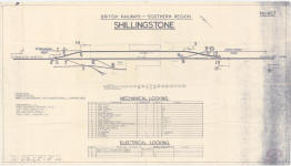 With the passage of time other items of information were included on signal diagrams, partly with the growth in the amount of electrical signalling equipment in use and the need for the signalman to be aware of what was present at his location. This information included such details as the type of block-working in use and its pattern of equipment (eg tablet instrument), the numbers of the signals with electrical arm or lamp repeaters, the numbers of points equipped with electrical or mechanical detection, whether Facing Point Locks stood normally 'in' or 'out', and the identities of any track-circuits (TC) whose status was indicated in the SB. All this information was placed in a 'block' usually at the left-hand side of the diagram below the 'signalling layout' section. In most SBs the actual status of any TC was shown by an electrical indicator mounted on the instrument shelf in a similar way to arm or lamp repeaters; the only known S&DJR example of an 'illuminated' signal diagram (which showed the TC status by lights inserted in the relevant parts of the tracks marked on the diagram) was provided about 1951/52 at Templecombe Junction. That diagram was very different in style from others on the S&DJR, being much longer but narrower and it omitted the locking tables and the 'block' of additional information.
