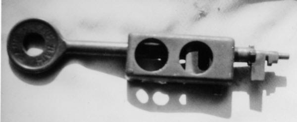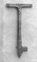 The design of the original Bath bank engine staff is unknown, but it may be been just a simple wooden 'train staff'. In British Railways days the staff took the form of a large metal key with an annular handle engraved "Bath Bank Engine" - see picture (click for larger image). The box-like section with two large holes was a loose cover which could be slid down over the key end for protection. This style of staff is identical to that which was included in a drawing circa-1912 (click here) for the lock required for the Tyer's No 6 ETT instrument, but it is a matter of conjecture as to what extent it might have resembled any earlier staff or whether it was a new staff provided at that time.