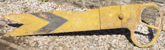 Signal arms consisted of a 'blade' attached to a metal spectacle plate casting, which incorporated a socket for the arm pivot. Signal blades were made from wood originally and the overall arm design was a lower-quadrant (LQ) pattern similar to that used by the L&SWR. The spectacle castings appear to have been obtained from a number of suppliers including Dutton, Saxby & Farmer (S&F) and the Railway Signal Company (RSC). Upper-quadrant (UQ) arms began to appear in SR days and these had metal blades, usually with distinctive horizontal corrugations which were provided to give greater strength to the sheet metal arm. (It is possible that some LQ arms were also fitted with metal blades.) The first use of UQ arms on the Southern Railway itself was at Liphook on 25-March-1928 (SR Signal Instruction 11 of 1928), where all seven main running signals were changed to UQ "as an experiment" (see Bowring [Ref 4] page 109). It is not known exactly when or where the S&DJR started to use UQ arms, as Signal Instructions for new or replacement signals rarely made any reference to any change from LQ to UQ, but evidence would suggest that LQ arms were still being fitted on new signals as late as 1929 (eg at West Pennard) and possibly even 1931 (eg Masbury).