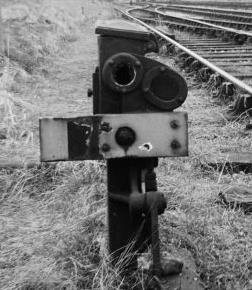 Exactly when 'yellow ground signals' were introduced is unknown, but probably it was circa-1925/26. In a 'yellow' ground signal that part of the arm or disc normally coloured red is coloured yellow instead and there is a yellow light instead of red in the 'on' position. The yellow colour indicates to the driver that the signal may be passed in the 'on' position if the route for which it applies is not set. A typical use of such a signal would be in the example previously quoted above; if the siding points are normal, then a train may pass the ground signal in the 'on' position in order to shunt into the headshunt, but if the points are reversed then the signal must be obeyed. The use of the colour yellow is not to be confused with its use for the arms of distant signals, although it was the case that one S&DJR 'yellow' ground signal was used simply as a repeater for another 'red' ground signal further ahead.
