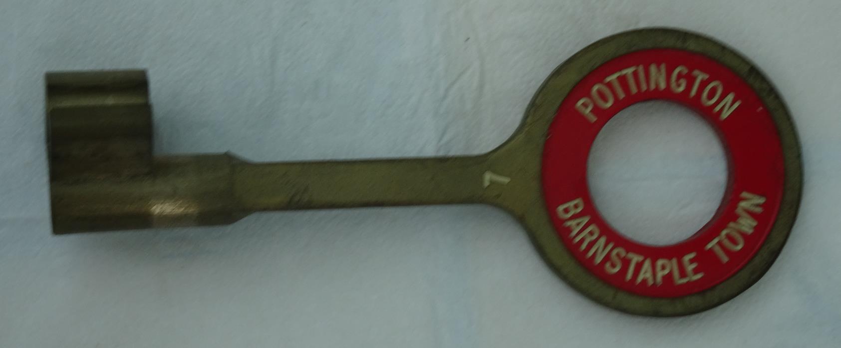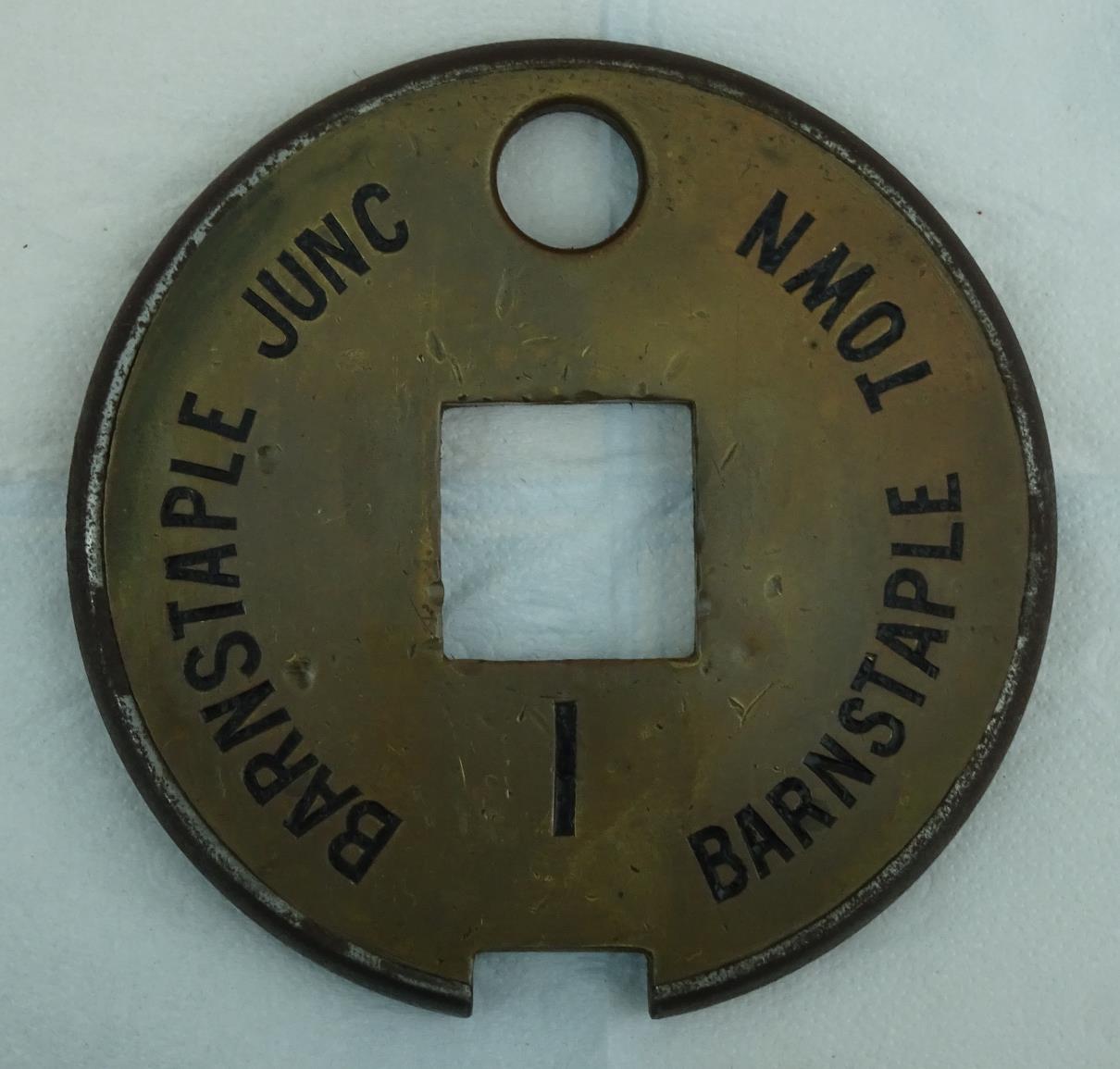 It would appear that at some date (probably in the early 1960s) there was a plan to replace the No 3 ETT instruments by Electric Key Token (EKT), as a number of BR(SR)-pattern key tokens labelled Barnstaple Town - Pottington exist in private collections, but there is no evidence that this alteration was ever implemented. When the line was rationalised in 1967 the No 6 ETT instruments were replaced by EKT using BR Western Region pattern equipment (with 'C' configuration tokens), while the new single-section from Barnstaple Town to Ilfracombe was worked under One-Engine-in-Steam regulations with a wooden train staff (round, red with an 'A' configuration Annett's key to unlock the ground-frames at Ilfracombe).