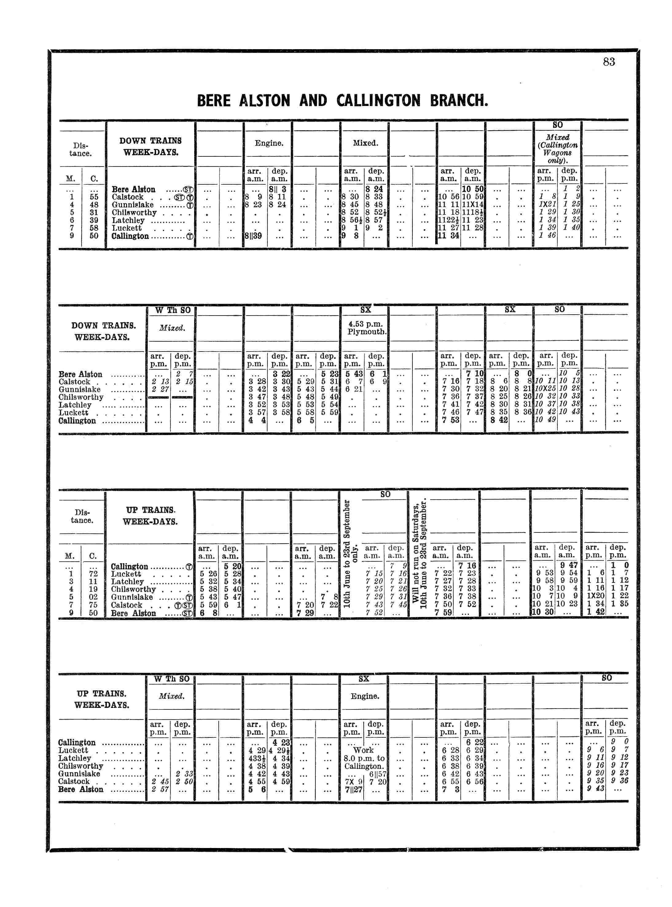 the Tuckermarsh sidings and leave Bere Alston at 8.00 pm for Callington, getting there at