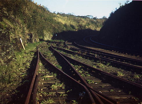 With the decline of the mineral traffic the wagon lift fell into disuse and in April 1933 the siding leading to the lift and all the Quay sidings were taken out of use; the lift itself was dismantled in 1934. Most of the remaining sidings were taken out of use on 4-August-1966, except for the loop adjacent to the main running line which remained until further changes on 5-May-1968.