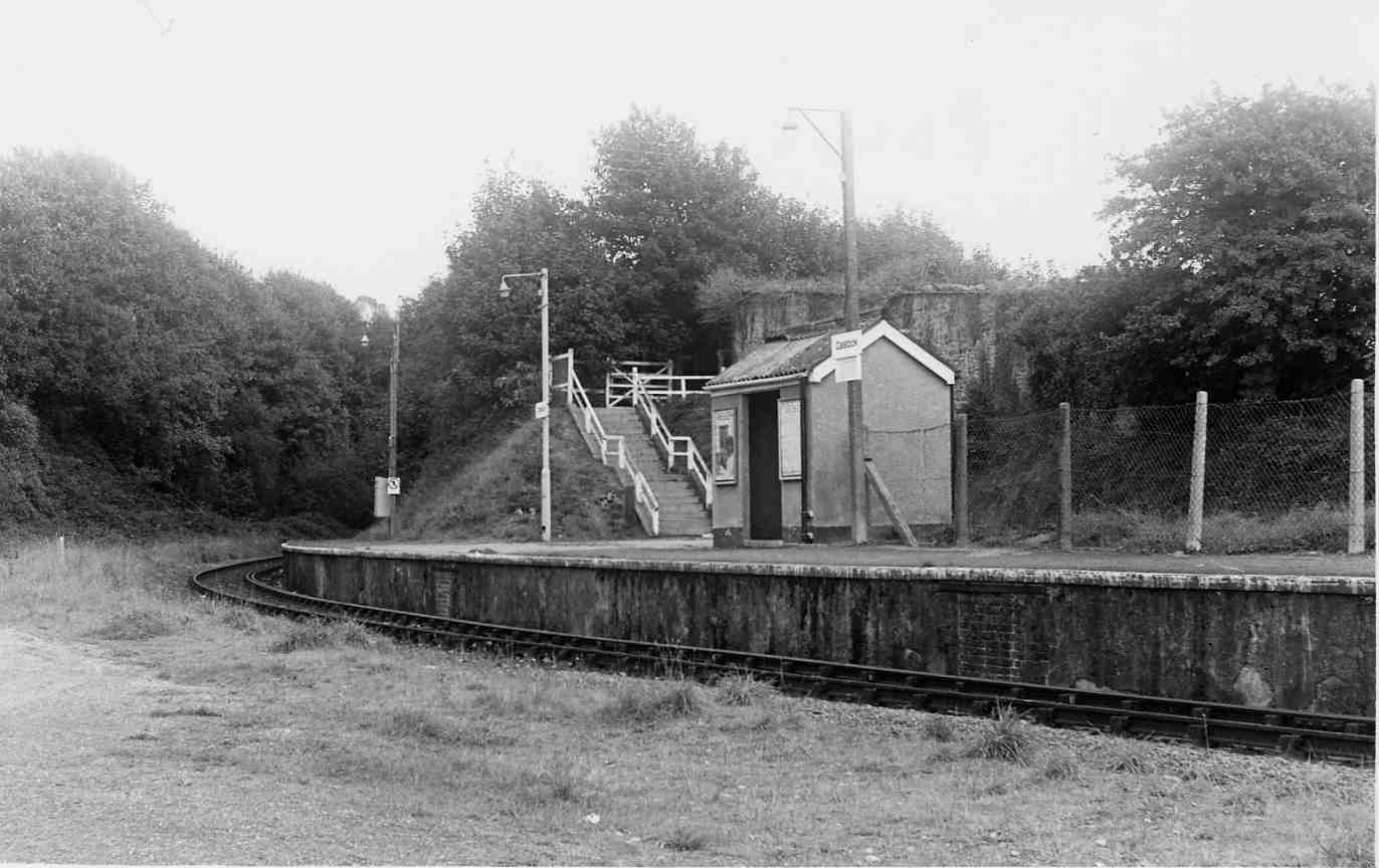 CHILSWORTHY. This station was originally just a single platform with a small shelter on the Up side of the single line, situated just west of a minor road overbridge, but in later years there were also a number of sidings in close proximity. The station was closed on 5-November-1966. The platform was still in existence in 2003 (click here for picture looking east with the bridge in the background) and the access path to it from the adjacent road now forms part of a public footpath.