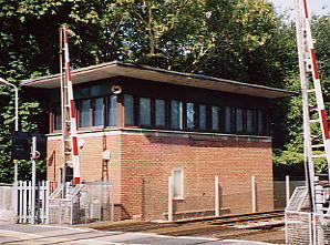 The controls for the barriers and signals, as well as the various repeaters, are located in a cabinet on the up platform adjacent to the crossing, with duplicated repeaters in the station office. Approaching trains trigger a warning bell at the station and a member of the staff walks to the crossing to operate the controls. Once he has lowered the barriers and cleared the signals he can return to the office, as the passage of the train over the crossing will restore the signals automatically and raise the barriers.