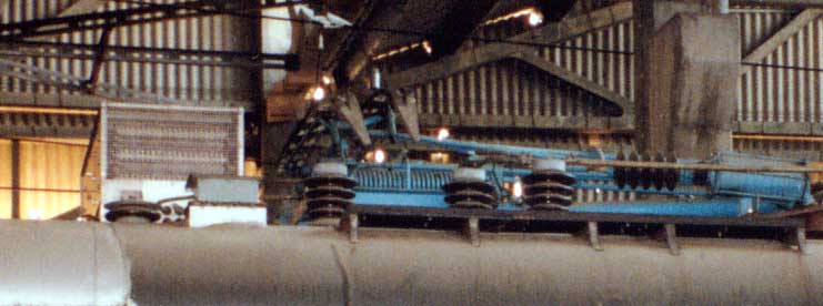 The box containing resistor look alike coils on the left of pantograph at roof