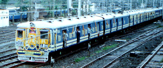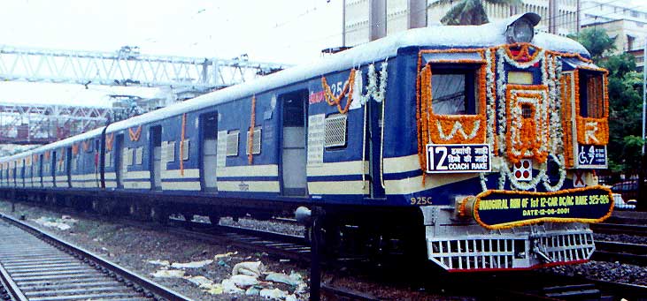 The AC/DC Photo of the rake being brought to Churchgate from Car shed on 12th June 2001. It was decorated for its maiden run.