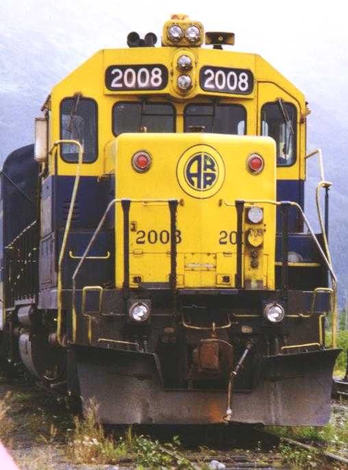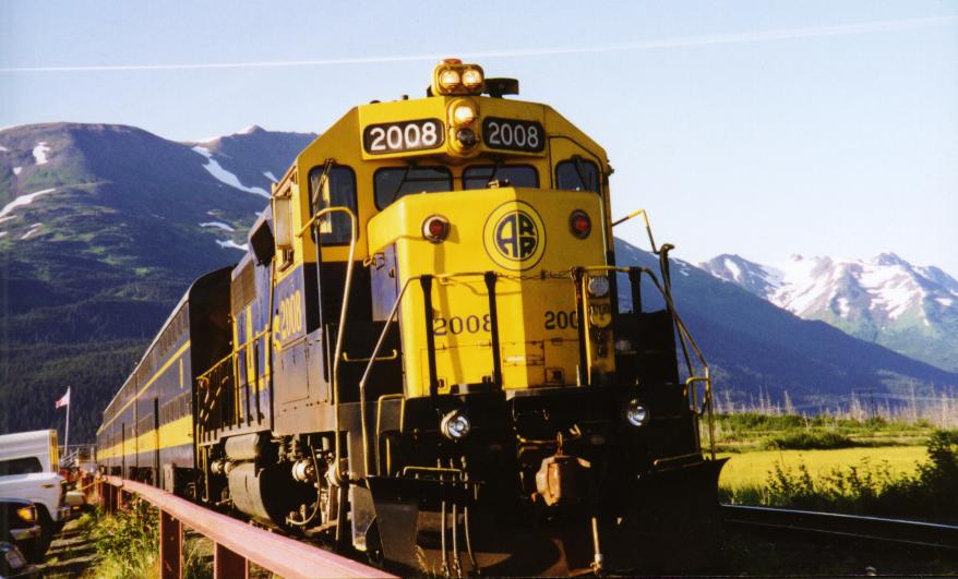 A train arrives at Portage with snow capped mountains in background.... Another picture of the same loco Cars in Portage - Whittier shuttle Another view of cars A typical Portage - Whittier shuttle with autos in summer Picture of the same loco on another day.....