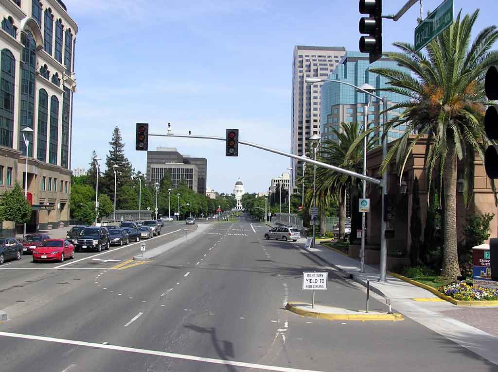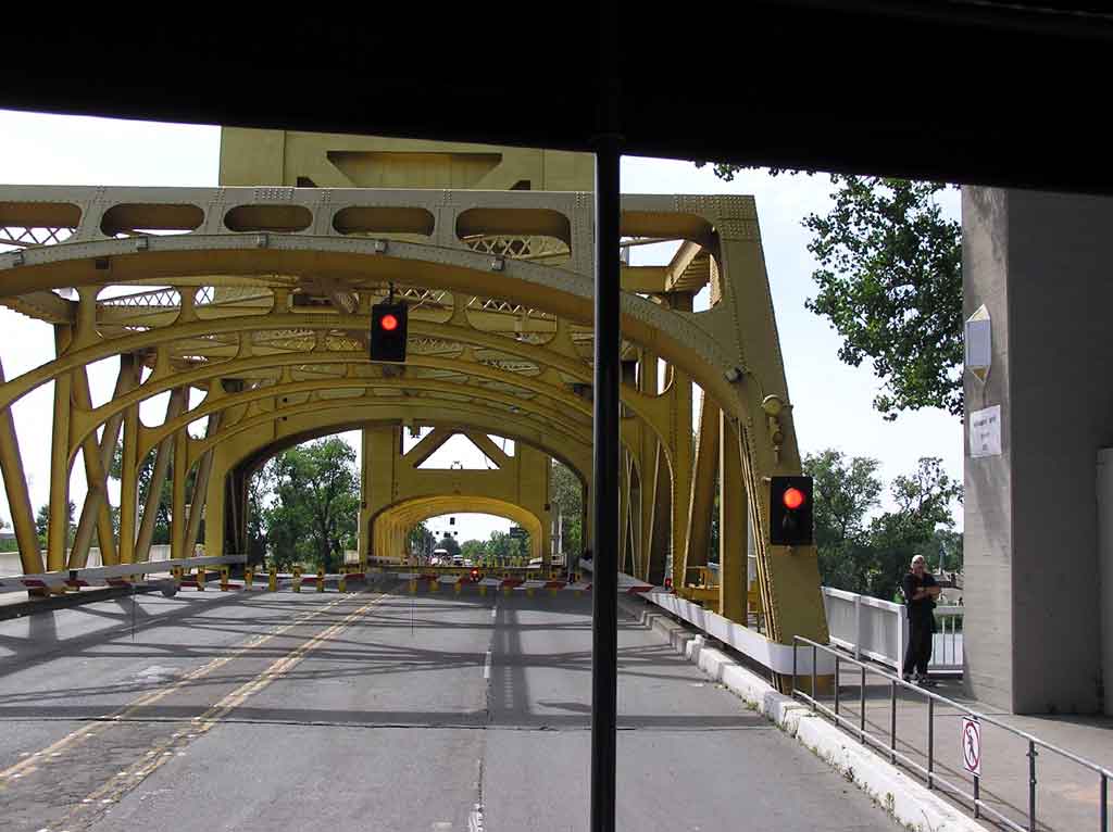 Capitol Mall bridge over the river is raised to allow tall ship to pass