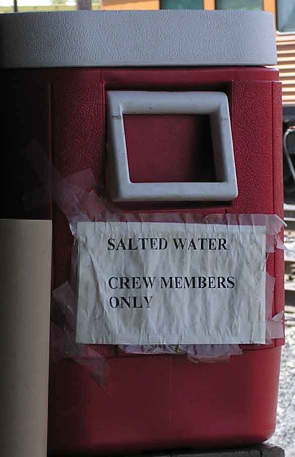 A clever sign. Now passengers do not use this water and jug needs fewer refills.