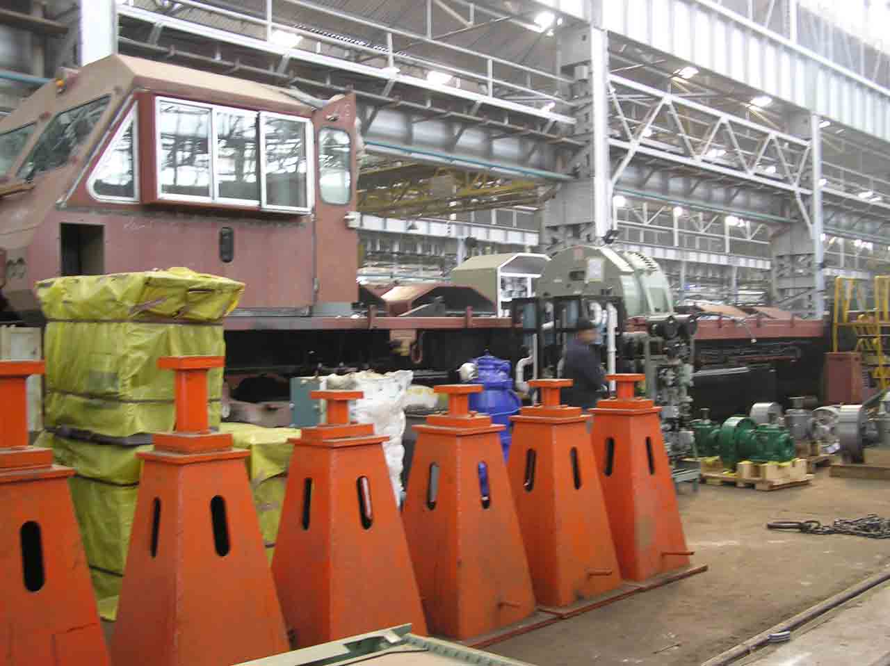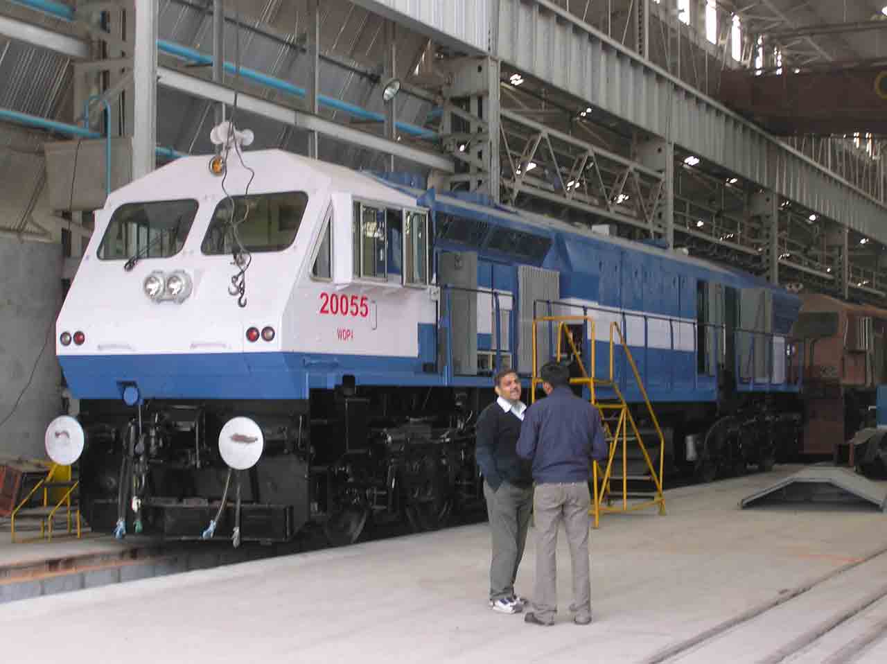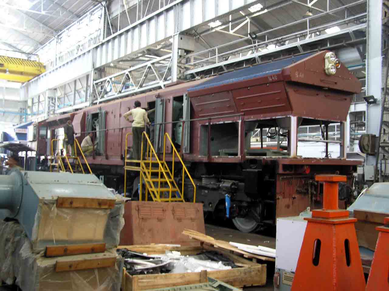 Here is WDP4B riding on dummy wheels out of paint shop.