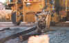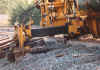After spikes are removed, new sleepers are laid in. The claws on middle right