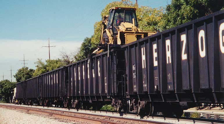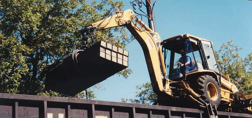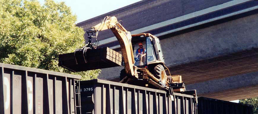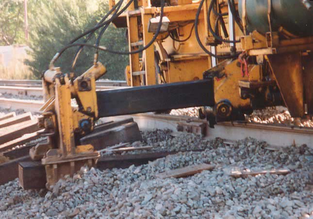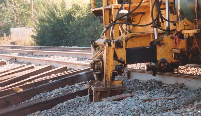 After spikes are removed, new sleepers are laid in. The claws on middle right