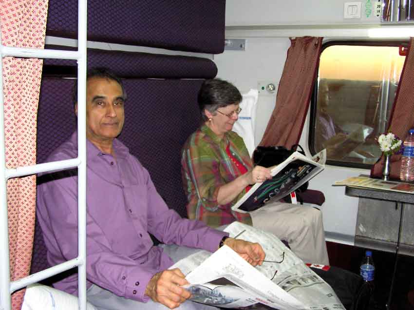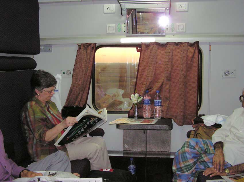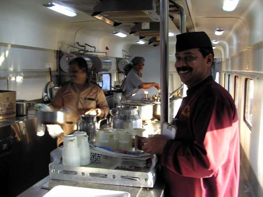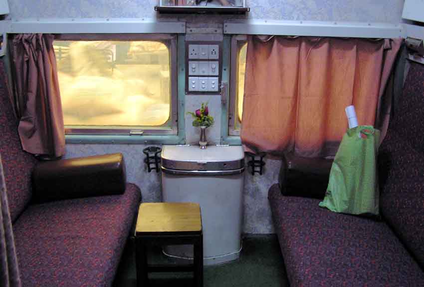I traveled on Mumbai Central to New Delhi by Rajdhani Express with LHB coaches and returned by August Kranti Rajdhani with ICF coaches in the first week of February 2005. Both types of coaches have their pros and cons that I am sharing with you. The LHB coaches were made at RCF. The finishing was better than ICF coaches but still not on par with original coaches made in Germany. The first thing that you may notice is AC First class is absence of small sink cum tabletop. That is a good decision as it provides good legroom if you wish to sit closer to window. There are two power outlets for laptops or cell phone chargers. Reading lamps are located on wall near window. Our coach was sandwiched between Power generator car and Pantry car. The pantry equipments are well laid and cleanliness was easily noticed. Power Generator and Guard's cubicle shared the same coach. Guard had walkie-talkie, VHF and conventional phones. There is no toilet for guard or two members of generator crew. It makes sense since the entire rake is vestibuled. Rajdhani rake has two generator cars with two generators in each car. The control panel offers several functions to monitor electrical load at different locations in rake, temperature and most notably the axle speed (in Kms/hr) of generator car. Return journey was in August Kranti Rajdhani with ICF coaches. This was the only ICF built rake for this train, I was told. Pantry car showed the age as well as quality enforced by different catering firm. The loco was WAP4E. BCT-NDLS Raj was hauled by WAP5. One can easily notice how quickly WAP5 accelerates compared to WAP4. Conventional wired phone is still used on Rajdhani even though these rakes also have walkie-talkie and VHF phones. I captured Assistant driver wrapping cable for conventional phone on film. |