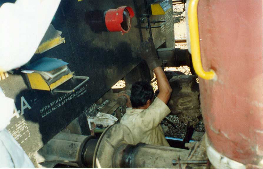Not an easy job, Man! Coupling a loco at Igatpuri.