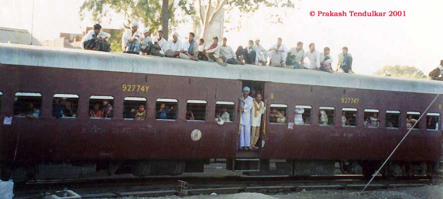 Roof top travelers on Khandwa. The rake came from a non-electrified track.