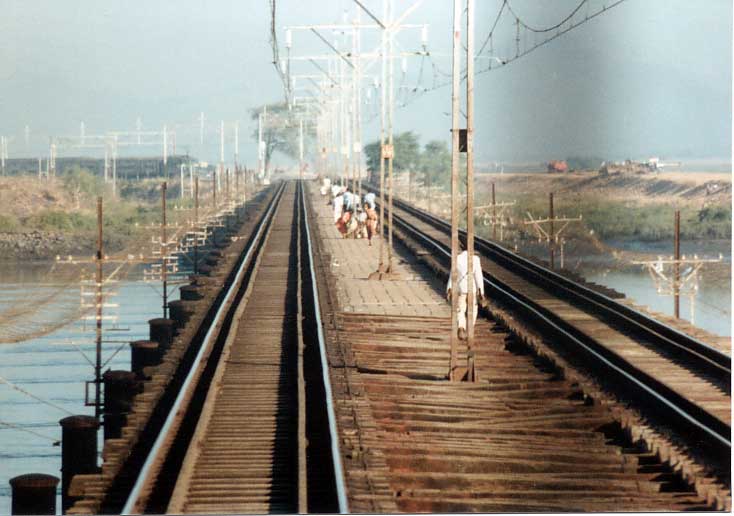 Pedestrians from Panju Island. Boat or Railway bridge are the only options for
