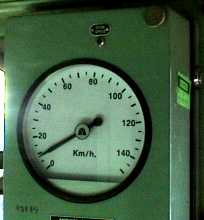Speedo. A light at center top blinks when speed exceeds 105 Km/hr.