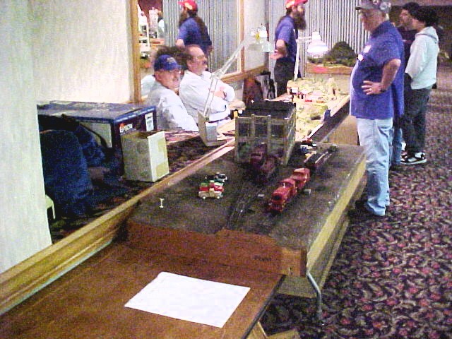 The Rochester Area S-Gaugers have been invited to show our modular layout at the semi-annual TTCS shows for more than five years. However, due to other commitments by many of our members, we only set up our small improved American Flyer Pike Master action layout. This layout was a big hit for a group of preschoolers that were at this show. This was the first Toy Train Collectors Society show at the Diplomat Banquet Center. |