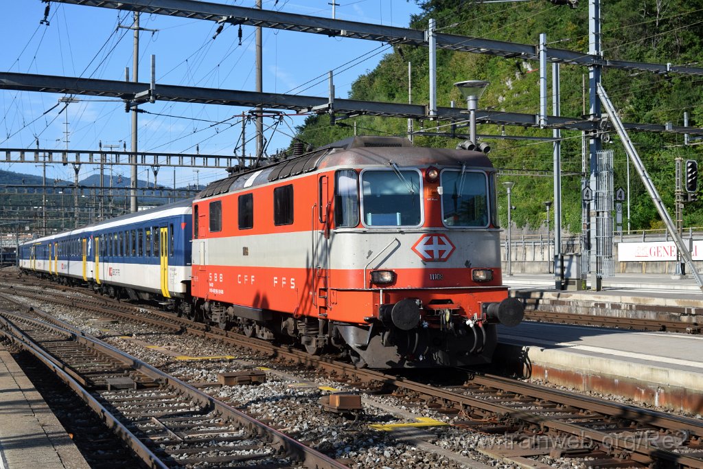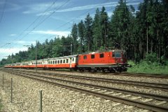 | Fitted in 1966 with reinforced bufferi beams (similar to those of the "Swiss Express") for trials with automatic coupler together with 11166. Has never carried the Swiss-Express livery. | ||