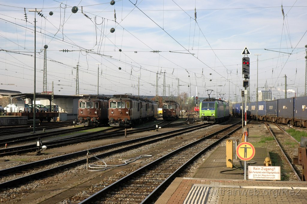 | BLS Re 4/4 171 ''Därligen'' + BLSC Re 4/4 170 (Re 425.170-8) ''Brig-Glis'' (91 85 4 425 170-8 CH-BLSC) + BLS Re 4/4 182 ''Kandergrund'' + BLSC Re 485.001-2 + BLSC Re 485.002-0 / Basel Badische Bahnhof 17.11.2012 | 2674-0049-171112 | |