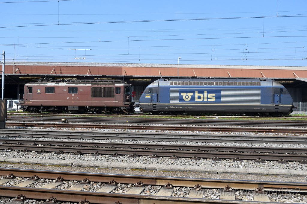 | BLSC Re 4/4 171 / Re 425.171-6 ''Därligen'' (91 85 4 425 171-6 CH-BLSC) + BLS Re 465.013-1 ''Stockhorn'' (Re 91 85 4 465 013-1 CH-BLS) / Pratteln 15.4.2019 | 5398-0007-150419 | |