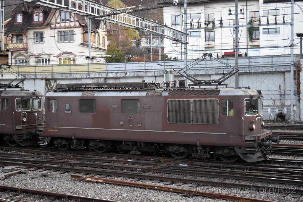 | BLSC Re 4/4 172 (Re 425.172-4) ''Eggerberg'' (91 85 4 425 172-4 CH-BLSC) / Spiez (Bahnhofstrasse) 15.11.2020 | 7210-0013-151120 | |