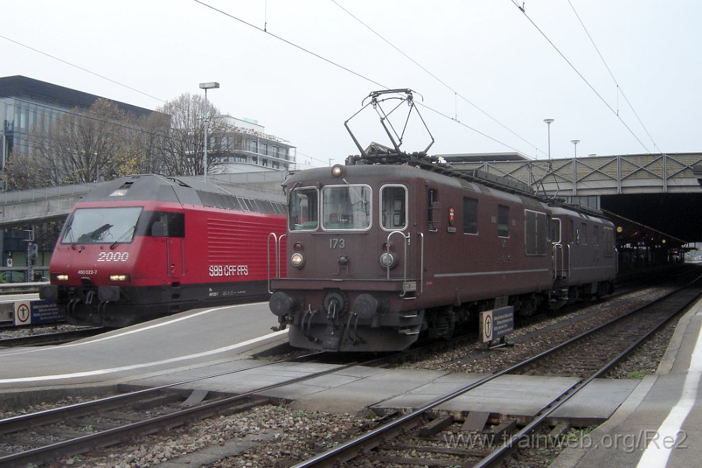 | BLS Re 4/4 173 ''Lötschental'' + BLS Re 4/4 166 ''Aeschi'' + SBB-CFF Re 460.022-7 ''Sihl'' / Winterthur 8.11.2005 | 1128-0033-081105 | |