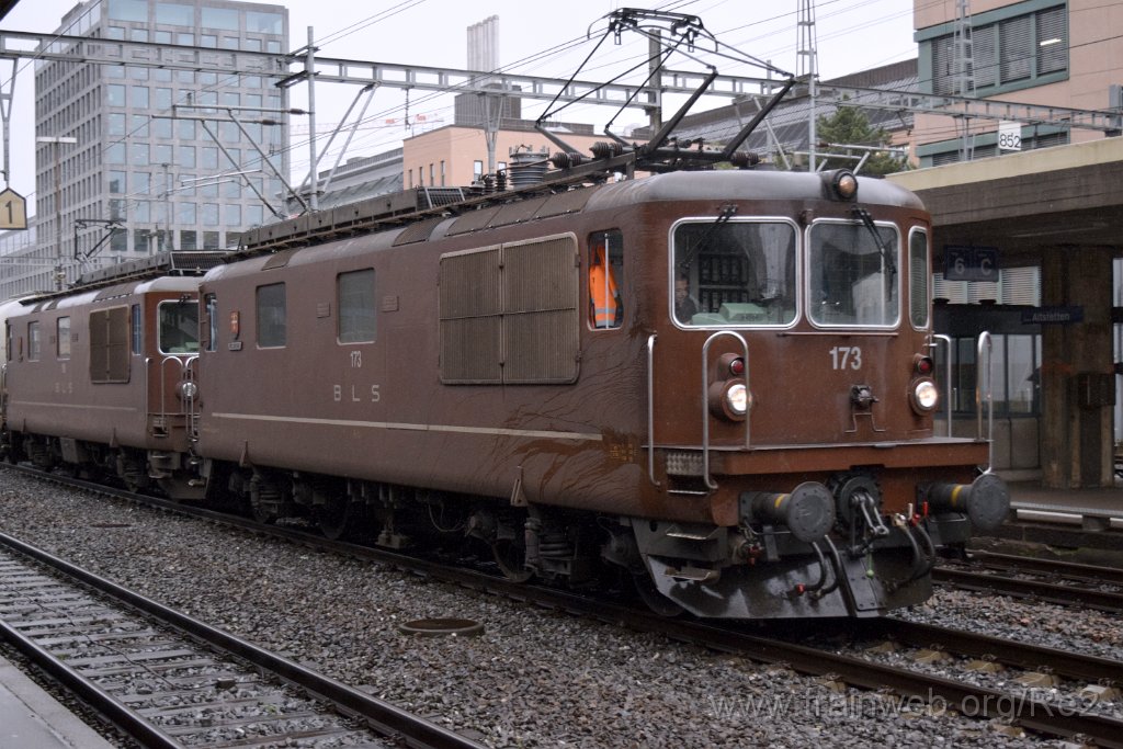 | BLSC Re 4/4 173 (Re 425.173-2) ''Lötschental'' (91 85 4 425 173-2 CH-BLSC) + BLS Re 4/4 190 (Re 425.190-6) ''Raron'' (91 85 4 425 190-6 CH-BLS) / Zürich-Altstetten 7.11.2016 | 4236-0012-071116 | |