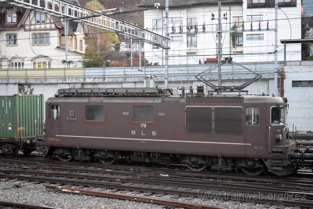 | BLSC Re 4/4 178 (Re 425.178-1) ''Schwarzenburg'' (91 85 4 425 178-1 CH-BLSC) / Spiez (Bahnhofstrasse) 15.11.2020 | 7210-0019-151120 | |