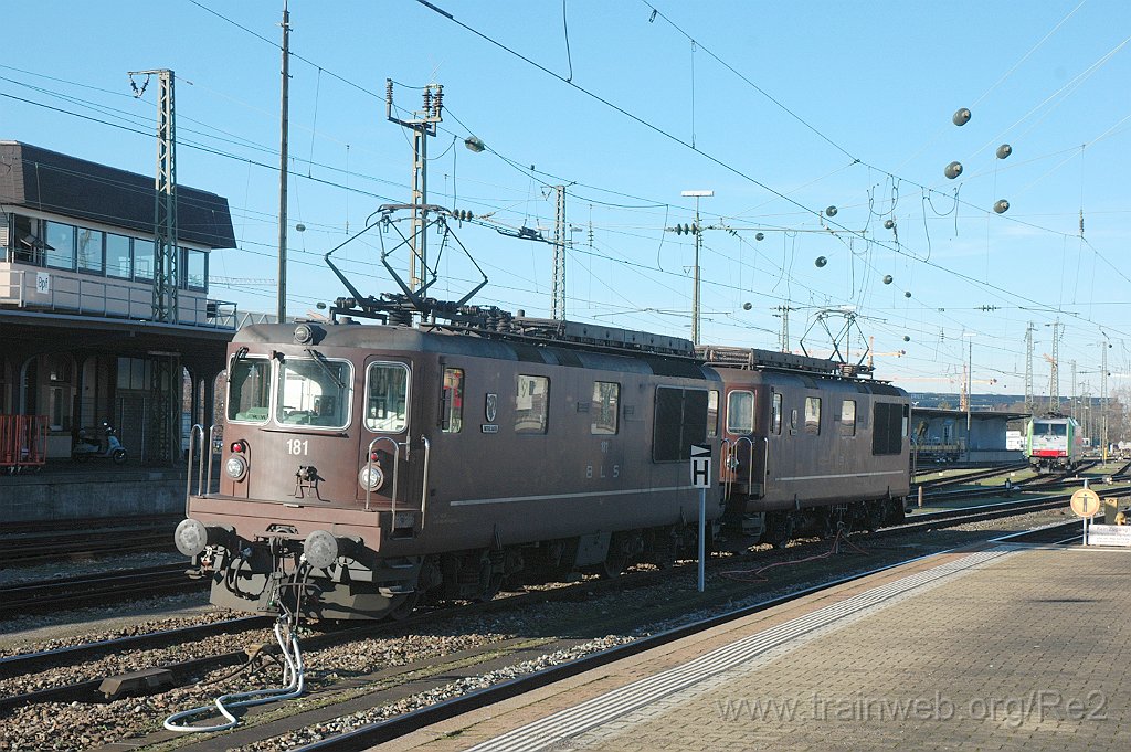 | BLSC Re 4/4 164 / Re 425.164-1 ''Lengnau'' (91 85 4 425 164-1 CH-BLSC) + BLSC Re 4/4 181 (Re 425.181-5) ''Interlaken'' (91 85 4 425 181-5 CH-BLSC) / Basel Badische Bahnhof 5.1.2015 | 3432-0040-050115 | |