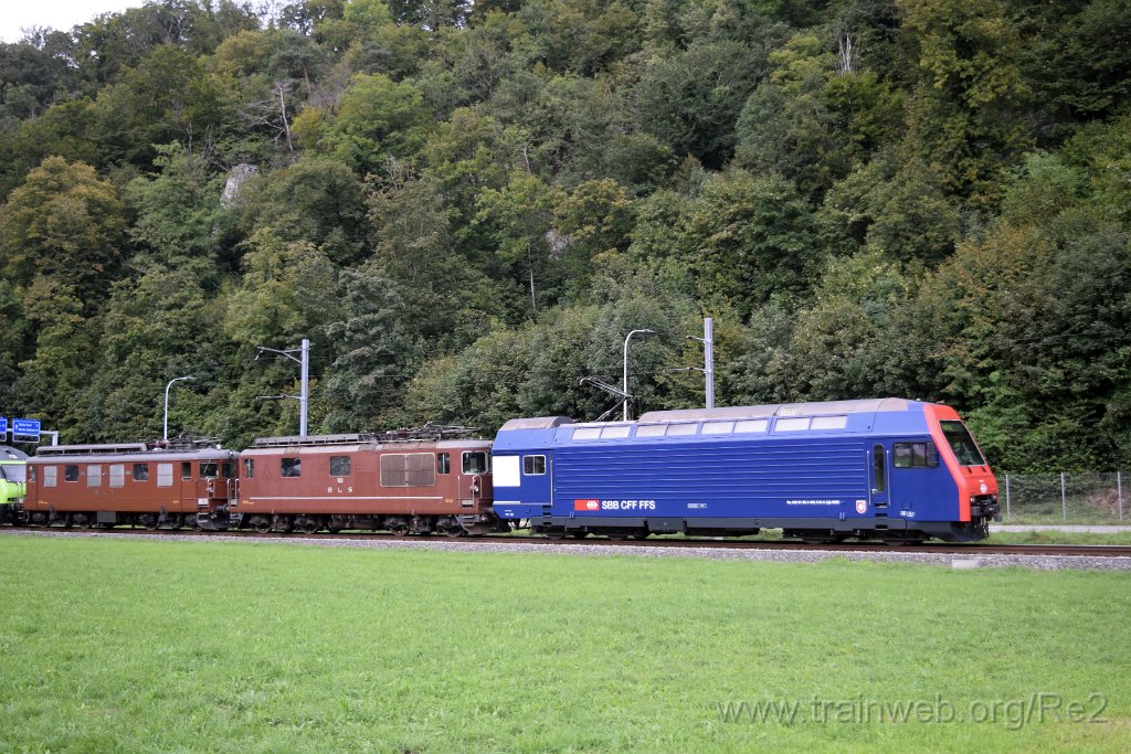 | SBB-CFF Re 450.012-0 ''Schwamendingen'' (Re 91 85 4 450 012-0-6 CH-SBB) + BLSC Re 4/4 183 / Re 425.183-1 ''Kandersteg'' (91 85 4 425 183-1 CH-BLSC) + BLS Ae 4/4 251 (91 85 4 415 251-8 CH-BLS) / Aeussere Klus 14.9.2024 | 9366-0041-140924 | |