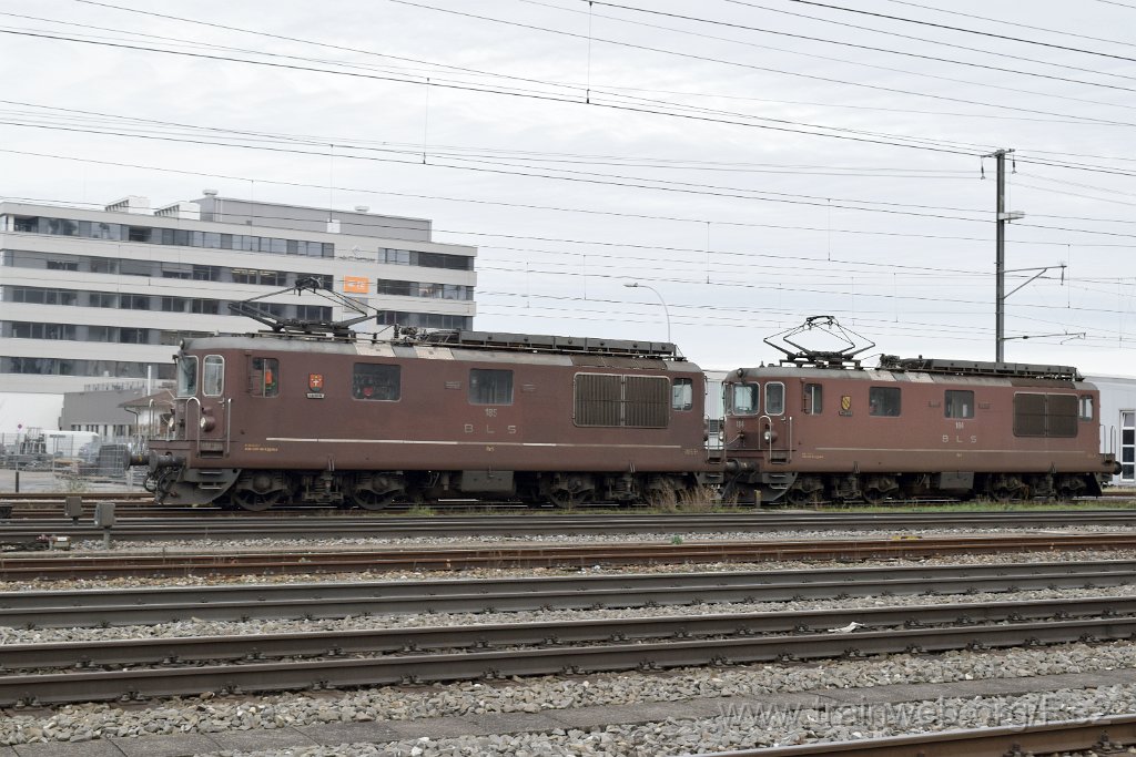 | BLSC Re 4/4 185 (Re 425.185-6) ''Lalden'' (91 85 4 425 185-6 CH-BLSC) + BLSC Re 4/4 184 (Re 425.184-9) ''Krattigen'' (91 85 4 425 184-9 CH-BLSC) / Pratteln 4.2.2021 | 7272-0037-040221 | |