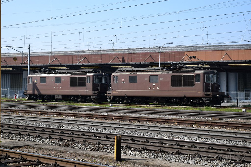 | BLSC Re 4/4 171 / Re 425.171-6 ''Därligen'' (91 85 4 425 171-6 CH-BLSC) + BLSC Re 4/4 186 (Re 425.186-4) ''Leissigen'' (91 85 4 425 186-4 CH-BLSC) / Pratteln 15.4.2019 | 5406-0019-150419 | |