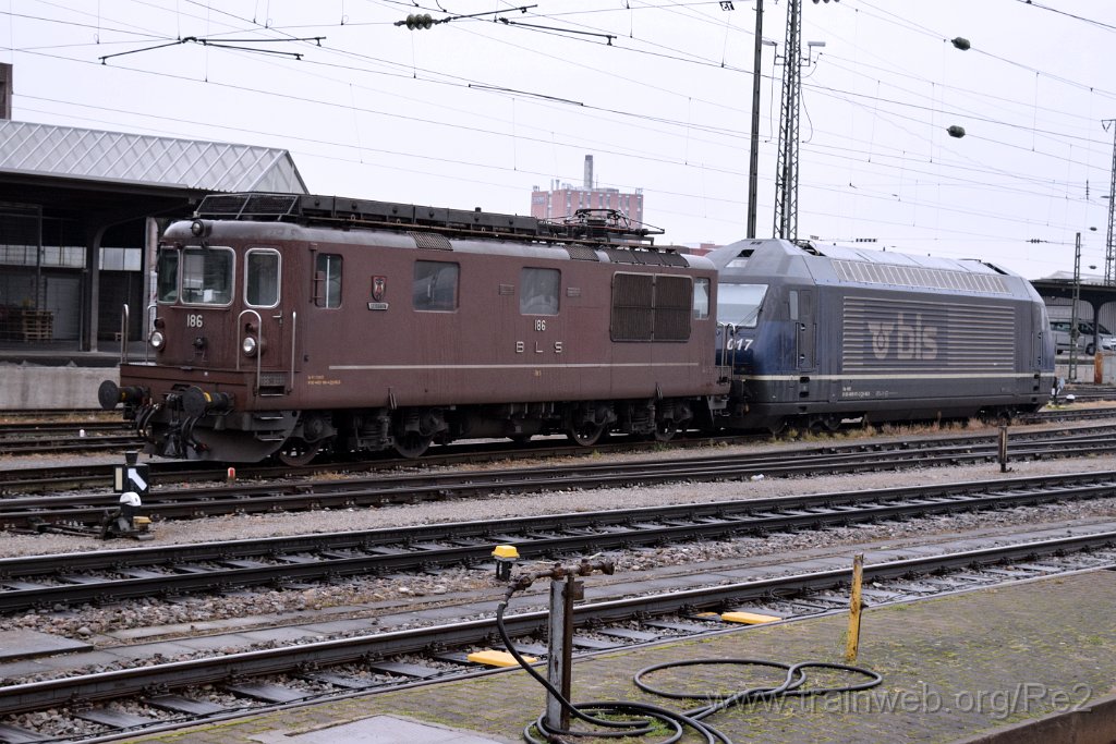 | BLSC Re 4/4 186 (Re 425.186-4) ''Leissigen'' (91 85 4 425 186-4 CH-BLSC) + BLS Re 465.017-2 ''Schrattenflue'' (Re 91 85 4 465 017-2 CH-BLS) / Basel Badische Bahnhof 11.12.2020 | 7225-0034-111220 | |