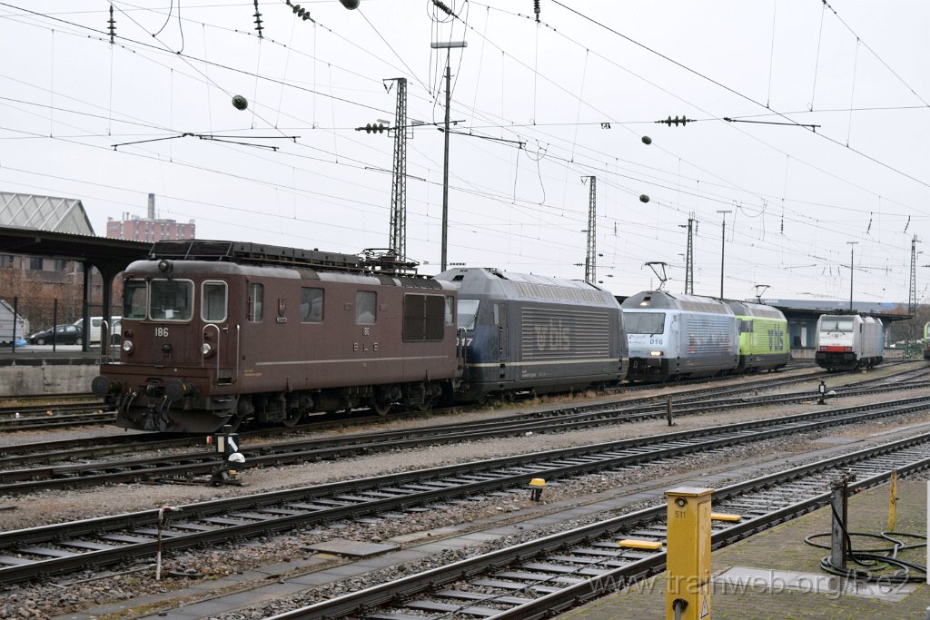| BLSC Re 4/4 186 (Re 425.186-4) ''Leissigen'' (91 85 4 425 186-4 CH-BLSC) + BLS Re 465.017-2 ''Schrattenflue'' (Re 91 85 4 465 017-2 CH-BLS) + BLS Re 465.016-4 ''Centovalli / Stockhorn'' (Re 91 85 4 465 016-4 CH-BLS) + BLS Re 465.013-1 ''Stockhorn'' (Re 91 85 4 465 013-1 CH-BLS) + RailPool 186.106-1 (91 80 6 186 106-1 D-Rpool) / Basel Badische Bahnhof 11.12.2020 | 7225-0039-111220 | |