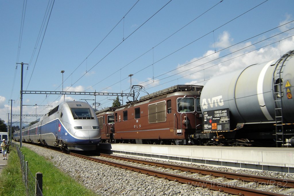 | BLS Re 4/4 188 ''Naters'' + SNCF TGV 384.001 / 4401 + BLS Re 4/4 *** / Grenchen-Süd 23.8.2006 | 1210-0049-230806 | |