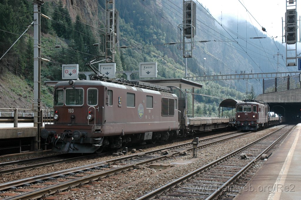 | BLSC Re 4/4 193 / Re 425.193-0 ''Steg'' (91 85 4 425 193-0 CH-BLSC) + BLS Re 4/4 165 ''Moutier'' / Goppenstein 8.9.2013 | 2939-0004-080913 | |