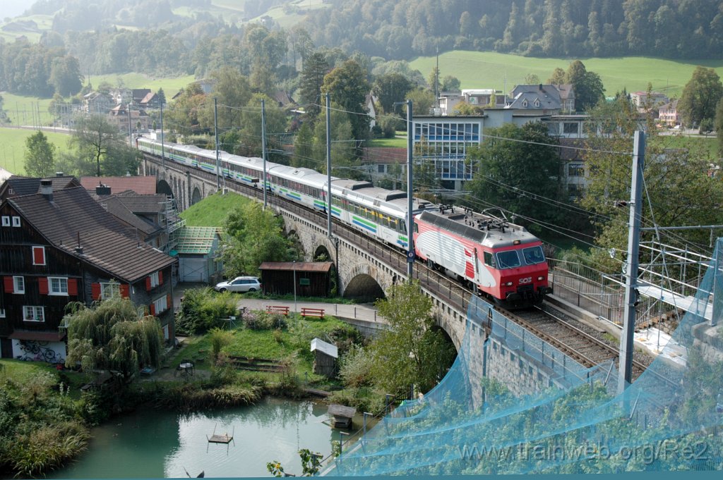 | SOB Re 446.018-4 + SBBC Re 421.378-1 (Re 91 85 4 421 378-1 CH-SBBC) / Lichtensteig (Untertor) 15.9.2014 | 3262-0047-150914 | |