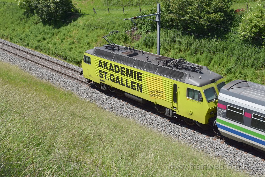 | SOB Re 446.018-4 ''Akademie St.Gallen'' (Re 91 85 4 446 018-4 CH-SOB) / Kaltbrunn (Brücke Sigristenackerstrasse) 10.6.2016 | 3961-0022-100616 | |
