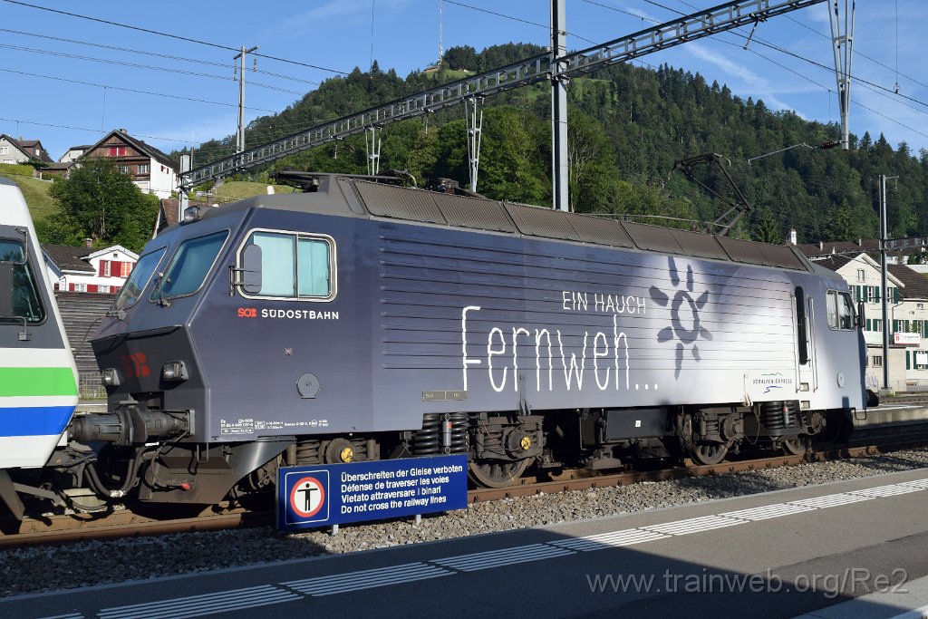 | SOB Re 446.017-6 ''Ein Hauch Sehnsucht'' (Re 91 85 4 446 017-6 CH-SOB) / Wattwil 4.7.2016 | 3964-0040-040716 | |