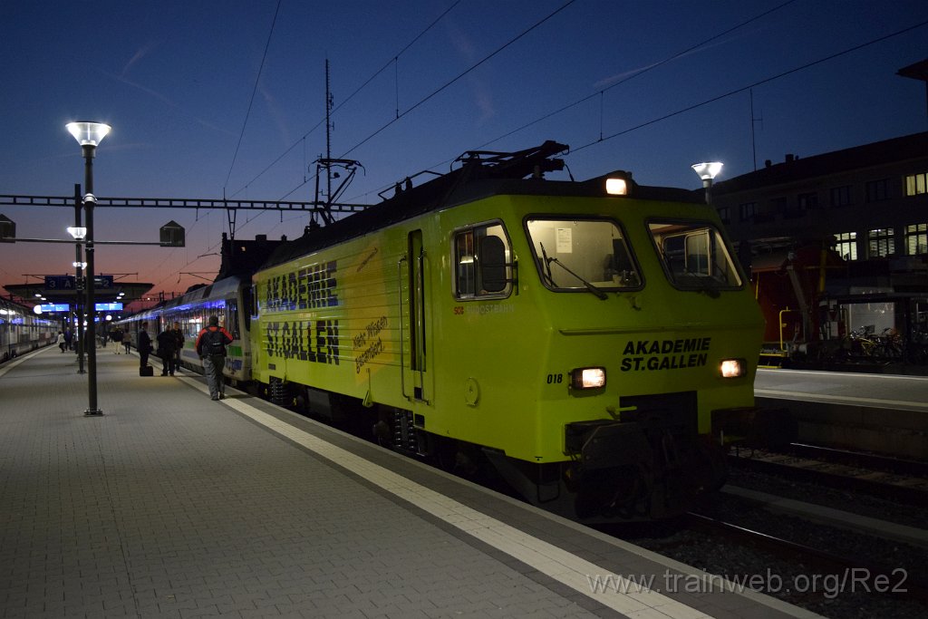 | SOB Re 446.018-4 ''Akademie St.Gallen'' (Re 91 85 4 446 018-4 CH-SOB) / Rapperswil 22.10.2018 | 5180-0006-221018 | |