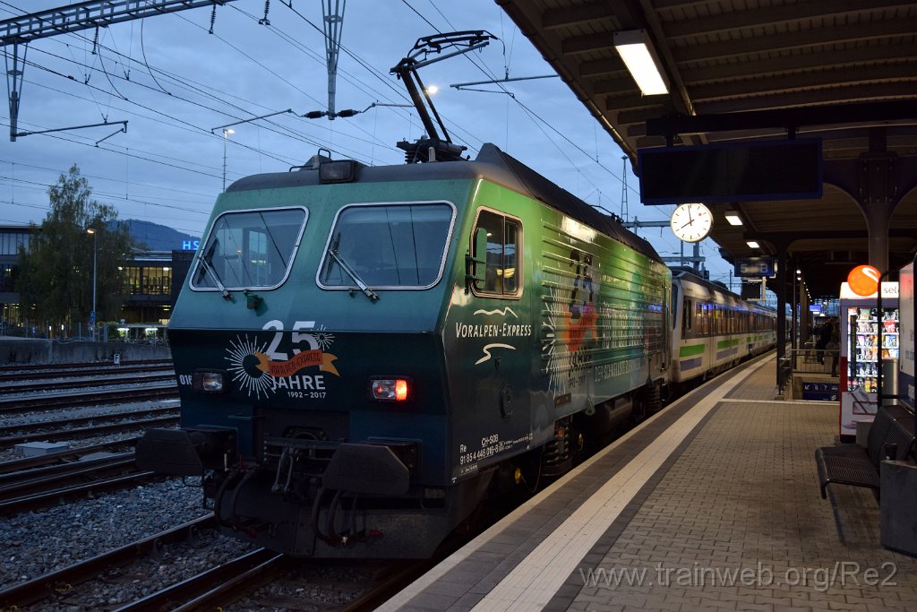 | SOB Re 446.016-8 ''25 Jahre Voralpen-Express'' (Re 91 85 4 446 016-8 CH-SOB) / Rapperswil 24.10.2018 | 5180-0050-241018 | |