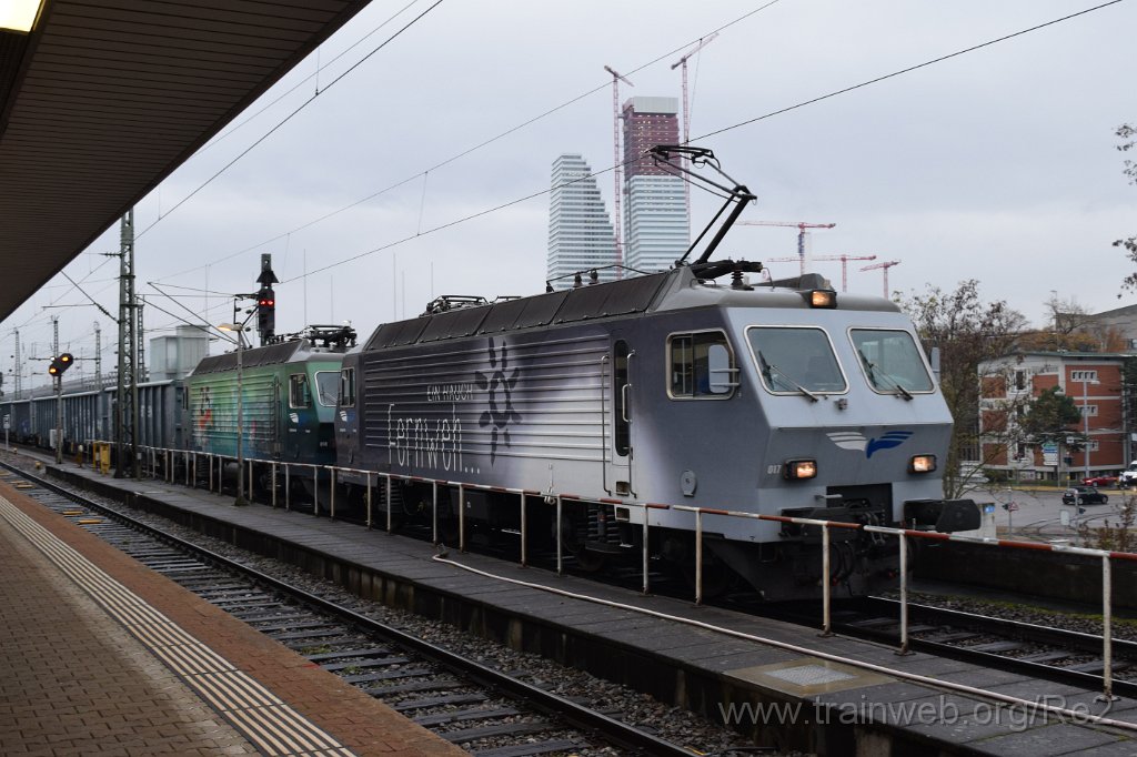 | EDG Re 446.017-6 ''Ein Hauch Sehnsucht'' (Re 91 85 4 446 017-6 CH-EDG) + EDG Re 446.016-8 ''25 Jahre Voralpen-Express'' (Re 91 85 4 446 016-8 CH-EDG) / Basel Badische Bahnhof 11.12.2020 | 7222-0032-111220 | |