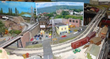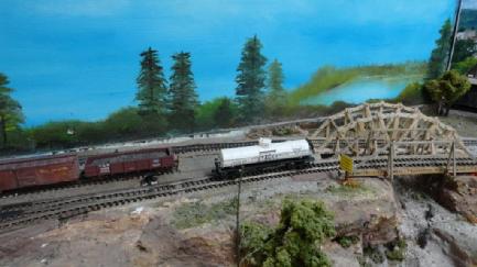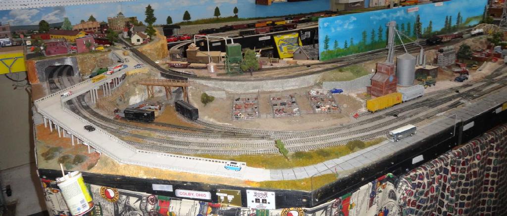 These are some photos of my layout, called the Red Valley Express. It is a fictional railroad that interlines with the NIckel Plate Road. It is mid 1950's era located in the Ohio valley of the United States. My main towns are Fostoria, Conneaut, and Ashtabula Ohio and a couple of fictional town called Smallville and the Lost Valley. There are some other small townships called Colby, and Willoughby The narrow gauge portion (HOn3) is called the "ToothPick Timber" and is lumber operation.