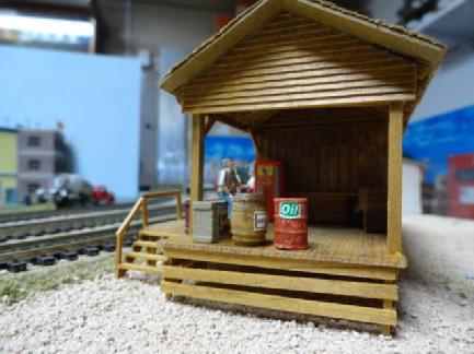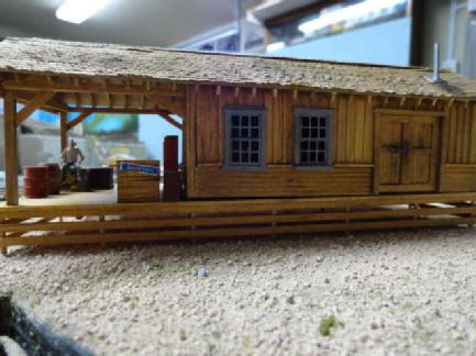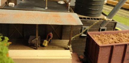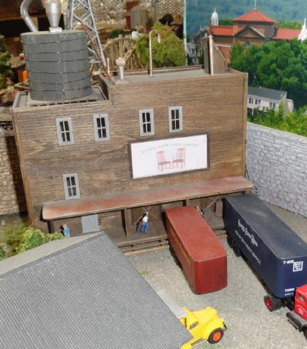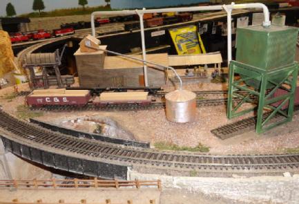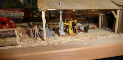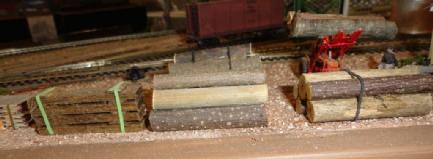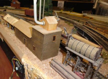 This is the narrow gauge sawmill operation. Toothpick Timber harvests the trees and transport them to the sawmill by logging cars. The mill then will process and ship out to the Bittercreek Chair Co and also to the transfer connection of the standard gauge for transport to other towns.Most of this section is scratch built and a couple of kits for the sawmill itself and the water tank. They also transport wood chips as well.