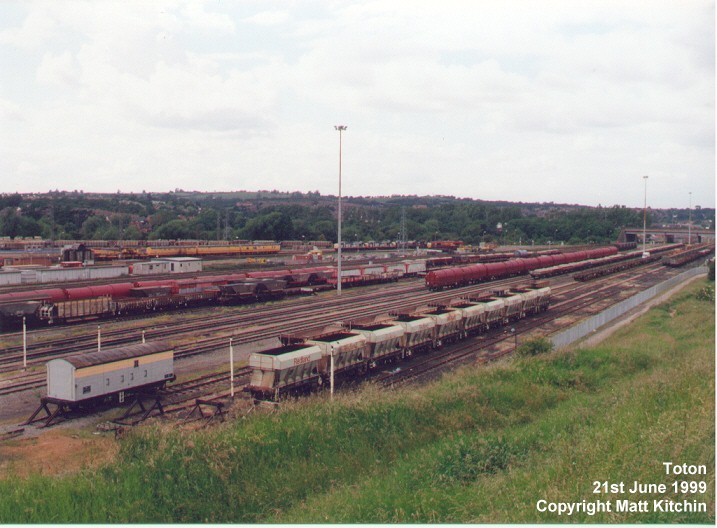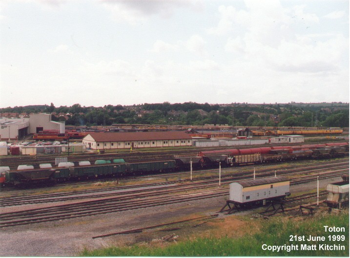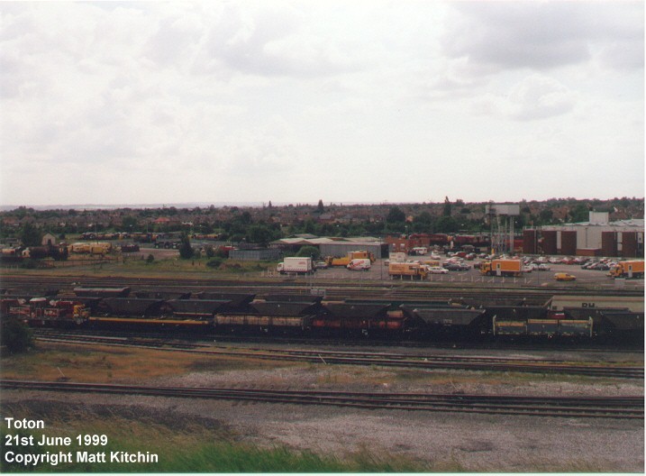 The following photos were taken from Toton Bank and give a panoramic view of the Toton Yards and Depot. Binoculars are required to identify most of the locomotives or stock in the yards and depot. All photos were taken on 21st June 1999 by Matthew Kitchin.