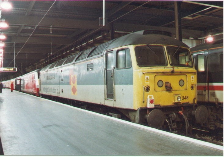 On the evening of 9th January I was in the Euston area for a few drinks. The "gen" came through that 47348 had rescued the 18:30 Manchester Piccadilly to Euston Virgin Trains service at Polesworth. Frantic phone calls followed to find out what happened and at 22:00 47348 finally arrived two hours late with a lot of annoyed customers! All photos © Matthew Kitchin. Click on the photos for a larger version.