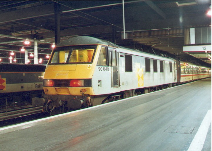 Above: 90040 at Euston after arriving with the ECS stock for the Glasgow / Edinburgh Scotrail sleeper.