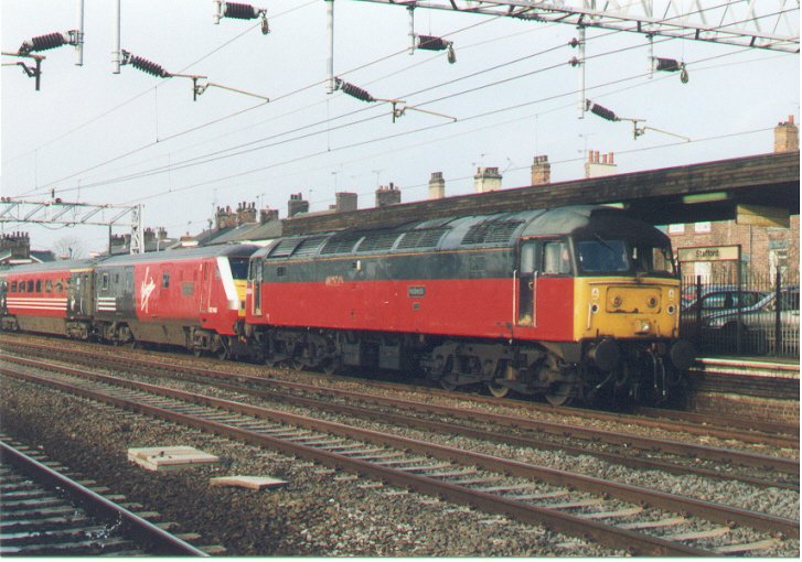 86259 passing through Stafford light engine after recently being repainted into Virgin Trains livery